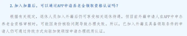 文章第四部分的第二个问题就是,“加入加籍后,可以通过APP申请养老金领取认证资格吗?”