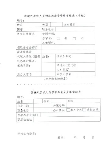 中国驻外使领馆主管领事应海外当事人(包括中国公民和外籍人士)申请,可为其领取中国境内养老金出具“在境外居住人员领取养老金资格审核表”。